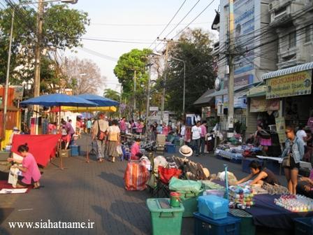 فروشنده های بازار از ساعت ۴ بعد از ظهر کار خود را شروع می کنند و هرچه به نیمه شب نزدیک شوید بر تعدادشان افزوده می شود. این بازار از خیابانی به طول یک کیلومتر کار خود را شروع کرده و فروشندگان در چهار ردیف اجناسشان را در معرض فروش قرار می دهند. با توجه به استقبال افراد محلی و گردشگران که ترکیب خوش آب و رنگی از مردم دنیا را پدید می آورند، بازار هر دفعه فضای بیشتری را اشغال می کند و حتی فضای بیرونی دروازه تاپائه را هم اشغال می کند. از شیر مرغ تا جان آدمیزاد، هرچه بخواهید در این بازار پیدا می شود. یکی از دوست داشتنی ترین بازار هایی است که تا به حال دیده ام…