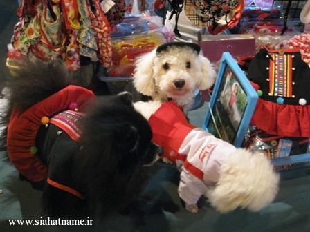 تعداد زیادی سگ های کوچک خوشگل که لباسهای فانتزی پوشیده اند، در معرض فروش قرار دارند؛ گذشته از این، تعدادی از فروشندگان هم سگهای بامزه خوشگلشان را برای جلب توجه و تبلیغ به میان بازار می آورند.