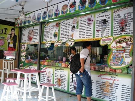 کوله پشتی ها را که گذاشتیم، راه افتادیم تا کمی با محیط اطراف هتل آشنا شویم و بعد هم به مرکز شهر سری بزنیم. باید کمی دلار تبدیل می کردیم و آژانسی می یافتیم تا برای دیدن دهکده کارِن (قبیله ی گردن درازها) تور رزرو کنیم. از خیابان فرعی هتل که به خیابان اصلی آمدیم با انبوه دانشجویانی که در دکه های گوشه و کنار خیابان نشسته بودند غافلگیر شدیم. از هر رنگ و نژادی که در تصورتان بیاید نماینده ای بود… خیابان شاد و شلوغی ست. فروشگاهی که در تصویر می بینید آیس پک می فروشد؛ معروف ترین برند این فروشگاه در تایلند است و D-MiLk نام دارد. تعداد ظروف مخلفاتش انتها ندارد. ظروفی که در جلوی پیشخوان مشاهده می کنید فقط ردیف اول مخلفات و تزئینات آیس پک انتخابی شماست…