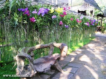 پیش از دیدن این باغ، علاقه ی خاصی به گل ارکیده نداشتم. فقط نیم ساعت گردش در این باغ خوش رنگ و بو کافی بود تا نظرم نسبت به آن عوض شود. دو نوع ارکیده در این باغ پرورش می دهند: وندا و کاتلیا؛ وندا مختص آب و هوای جنوب شرق آسیاست.