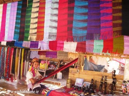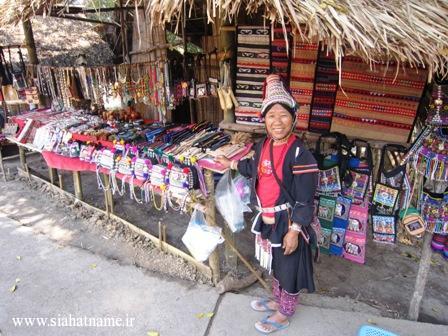 بعد از صرف ناهار در رستوران محلی همان محوطه، برای دیدن قبیله ی گردن درازها به دهکده کارن رفتیم. در ورودی دهکده نمادینی که برای بازدید گردشگران ایجاد شده است، زنانی از قبایل دیگر صنایع دستی می فروشند: