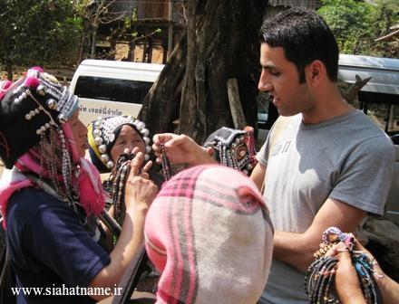 بعد از آن، راهی شدیم تا دو قبیله کوچ کرده از برمه (میانمار) را ببینیم؛ کارِن و آکا. در اواخر دهه ۱۹۸۰ و اوایل ۱۹۹۰ و به دلیل مشکلاتی با رژیم نظامی برمه، بسیاری از قبائل، به مرزهای تایلند کوچ کرده اند و از حمایت دولت تایلند برخوردارند. در این میان تنها افراد قبیله گردن درازها و به دلیل جذب انبوه گردشگران به خودکفایی رسیده اند و نیاز به حمایت مالی ندارند.