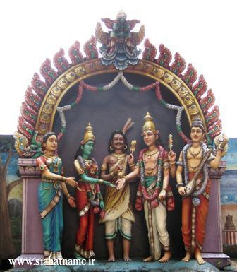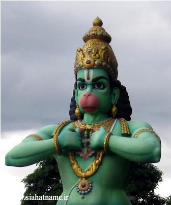 مجسمه لرد هانومان – یک شخصیت اسطوره ای هندی که نماد ایثار و فداکاری است. در حماسه رامایانا، هانومان هوادار راما بود و به دنبال سیتا همسر گمشده ی او می گشت. وقتی از او پرسیدند: “راما را می شناسی؟” سینه اش را شکافت و نام راما را بر قلب خود نشان داد… آن دو تا آدم هم راما و سیتا هستند.